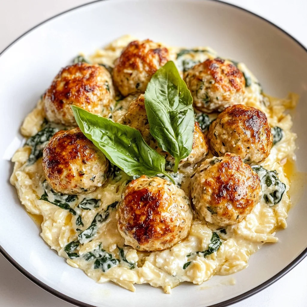 These Baked Chicken Ricotta Meatballs are a game-changer for your weeknight dinners, offering a delightful blend of flavors and textures that will leave your taste buds dancing. The ricotta cheese not only makes the meatballs incredibly moist but also adds a subtle creaminess that perfectly complements the savory notes from the garlic and onion powder. Paired with the rich and velvety spinach Alfredo sauce, which is elevated by fresh garlic and parmesan, each bite delivers a luscious experience that warms the soul. The vibrant green spinach not only enhances the dish visually but also contributes a fresh flavor that balances out the creaminess, making it irresistible. You’ll want to whip up this comforting dish tonight and savor every delicious morsel!