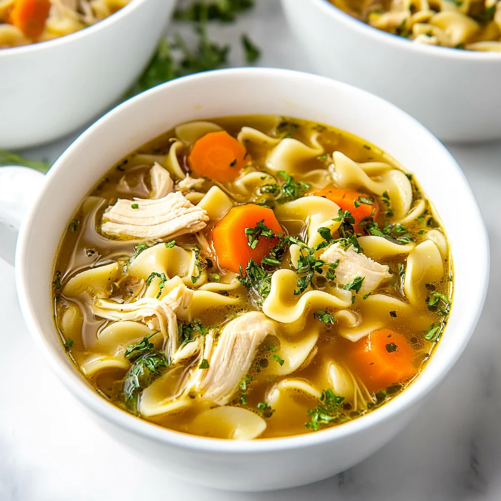 Rich, aromatic steam rises from a bowl of the Best Chicken Noodle Soup with Egg Noodles, inviting you to savor each spoonful of its golden broth. With tender pieces of chicken mingling with crisp vegetables and perfectly cooked egg noodles, this dish embodies the essence of comfort food, perfect for a cozy weeknight dinner or a gourmet escape in your own home.