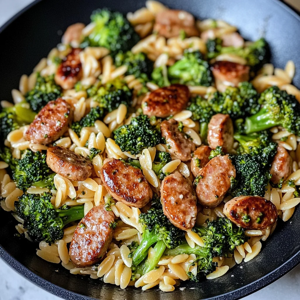 Chicken Sausage, Broccoli, and Orzo Skillet: Comforting a…