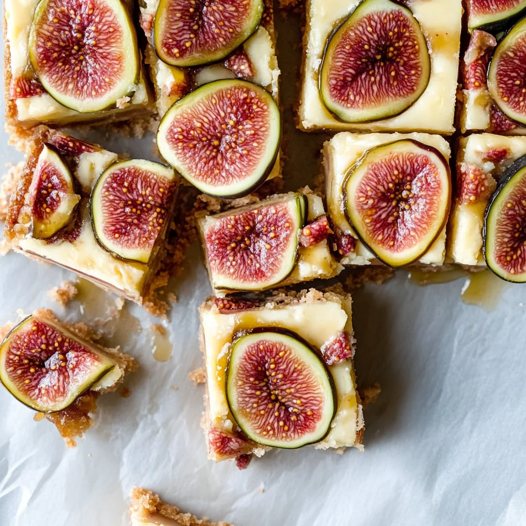 What sets these bars apart is their exquisite balance of sweetness and tang, achieved through the harmonious blend of high-quality cream cheese and fresh figs. A hint of vanilla adds depth, while the buttery crust provides a delightful crunch that contrasts beautifully with the creamy filling. Serve them chilled for an elegant touch or warm for that homemade feel—either way, they promise to be a showstopper at your next gathering.