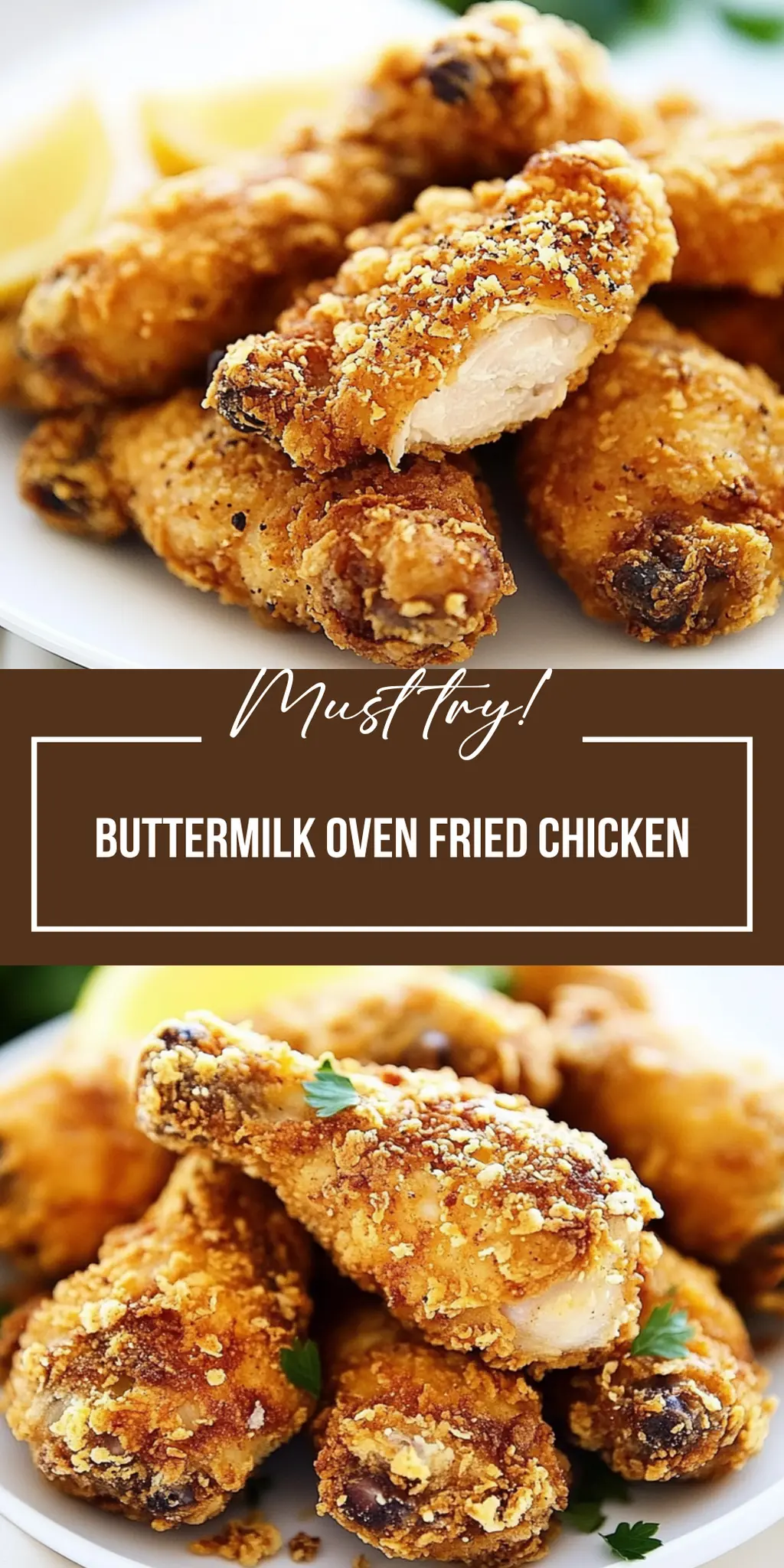 Buttermilk Oven Fried Chicken is a delectable balance of juicy tenderness and crispy coating that elevates any meal. The experience of marinating the chicken and the satisfaction of achieving that perfect golden crust make this dish a must-try. Whether for a cozy family dinner or an impressive gathering, this recipe promises to delight everyone. Embrace the delightful flavors and aromas of Buttermilk Oven Fried Chicken, and you may find it becoming a beloved staple in your kitchen!