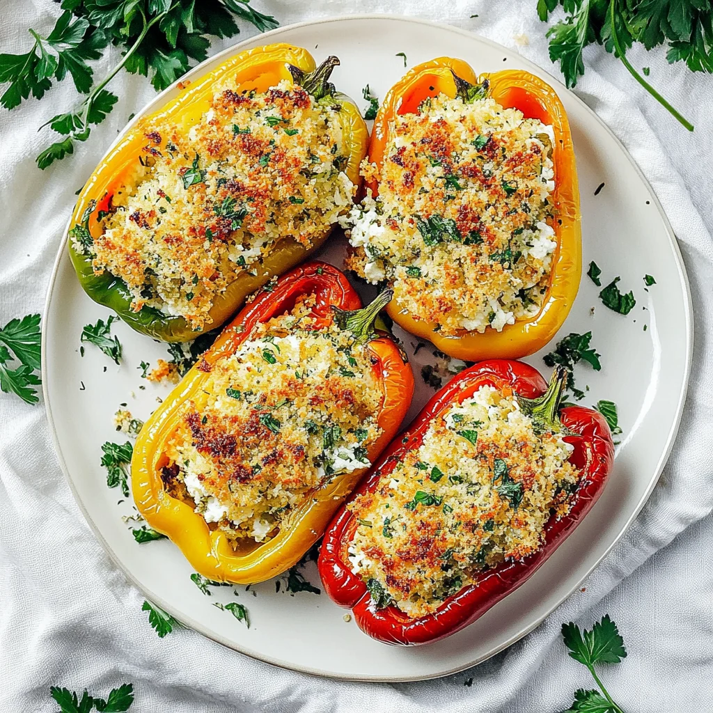 What truly sets these stuffed peppers apart is the luscious ricotta filling, enriched with a medley of fragrant herbs that dance on your palate with every bite. The technique of baking them to tender perfection ensures that each pepper retains its natural sweetness while providing a satisfying contrast to the rich, creamy interior. Serve these delightful morsels alongside a simple salad or crusty bread, and you’ll create not just a meal, but a moment worth savoring.