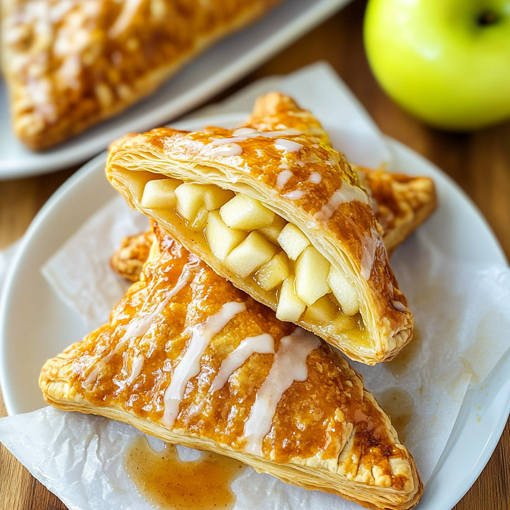 Delightful pastries made from flaky puff pastry filled with a sweet apple mixture resembling homemade apple pie filling.
