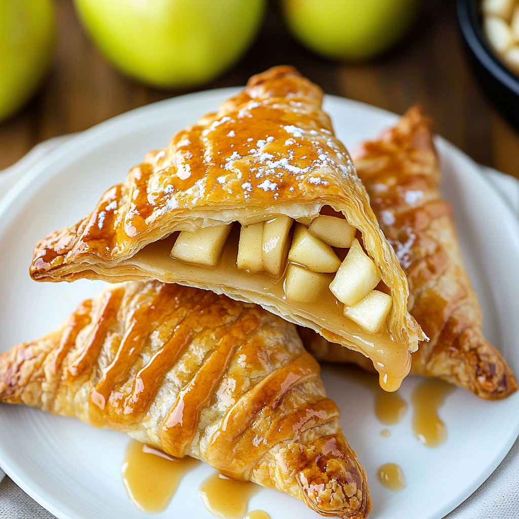 Delightful pastries made by enveloping a sweet apple filling in flaky puff pastry dough, reminiscent of apple pie.