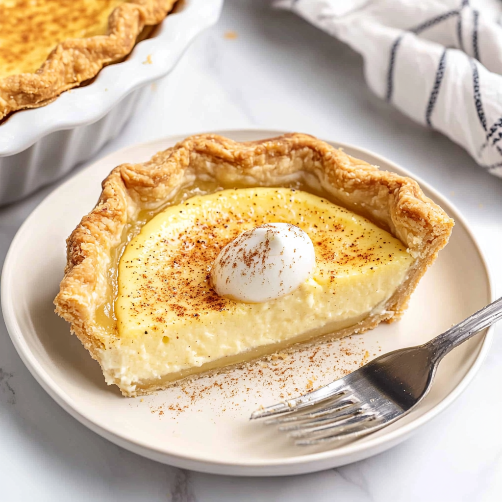 This creamy Recipe For Egg Custard Pie is the ultimate comfort dessert that combines rich flavors and a delightful texture. With its warm spices and a perfectly crisp oatmeal cookie crust, this pie is sure to impress at any gathering.