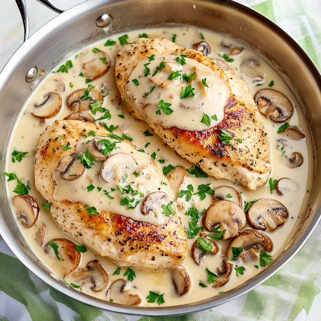 Return the cooked chicken breasts back into the skillet, spooning some of that delightful mushroom sauce over them. Allow everything to simmer together for an additional 5 minutes so that the chicken heats through and absorbs some of those fantastic flavors from the sauce.