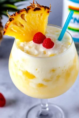 In a blender, combine 2 cups of fresh pineapple chunks, 1 cup of coconut cream, 1 cup of white rum, and 1/2 cup of ice. If you prefer a slushier texture, using frozen pineapple chunks works beautifully. Ensure all ingredients are evenly distributed in the blender for a consistent flavor throughout.