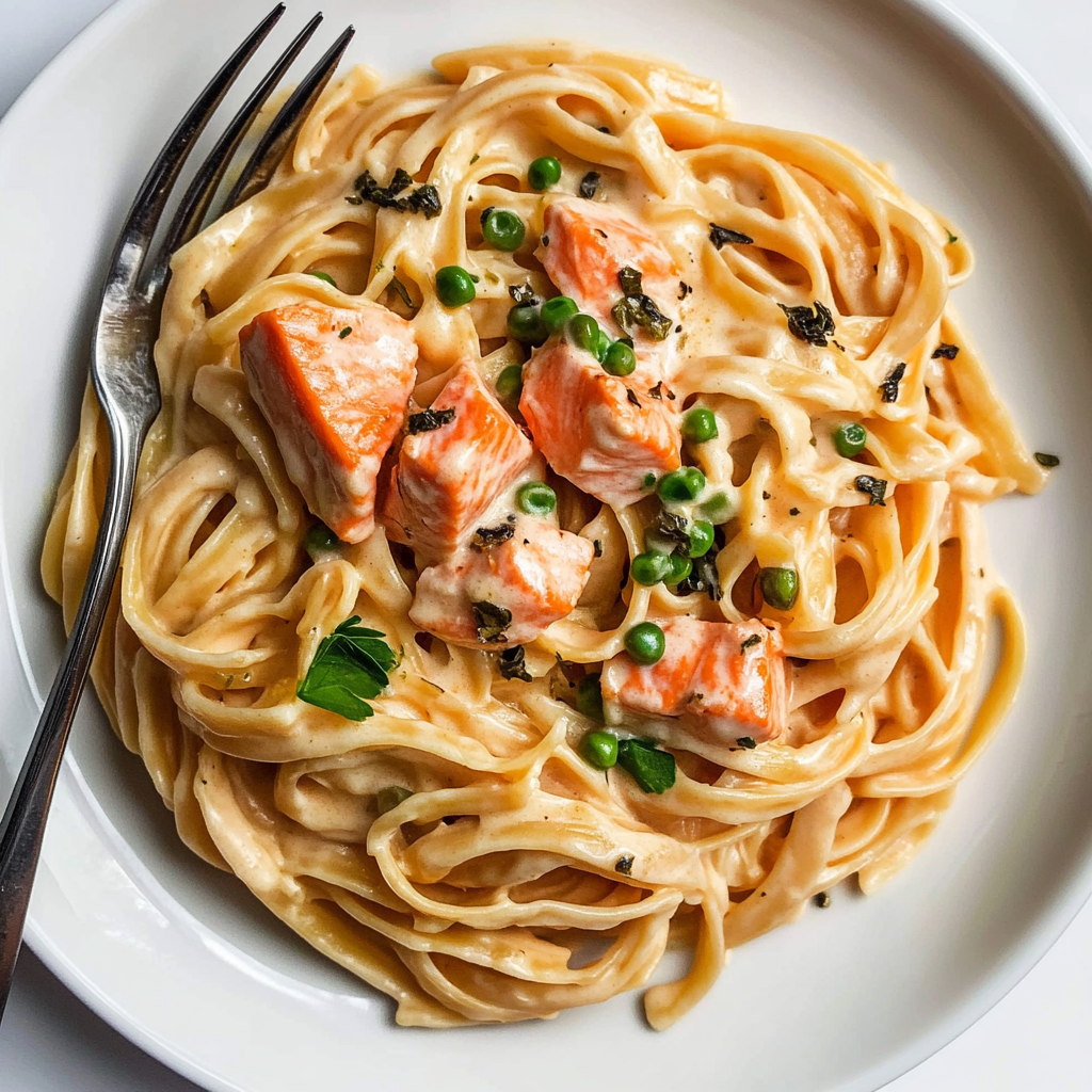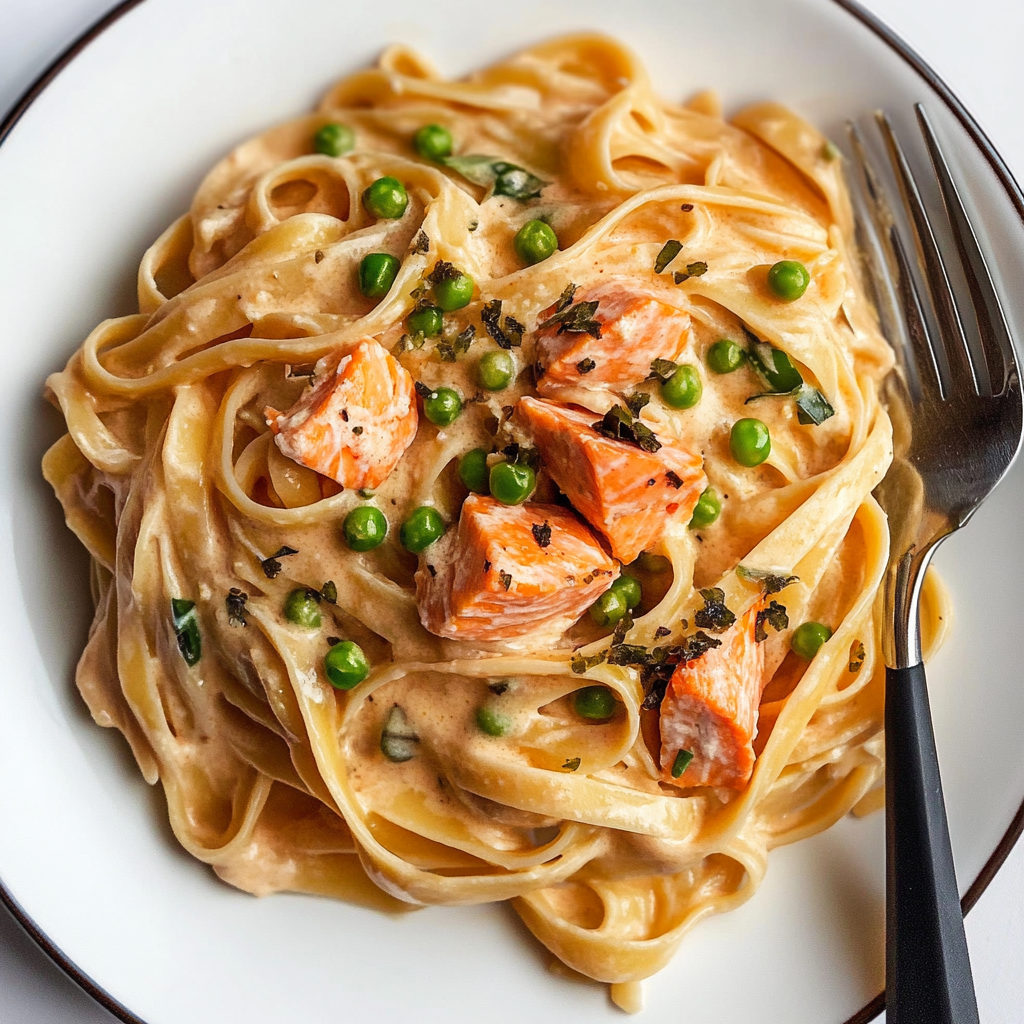 Growing up, my family often gathered around the dinner table for meals like this creamy salmon pasta. It always reminded me of love and laughter shared over delicious food.