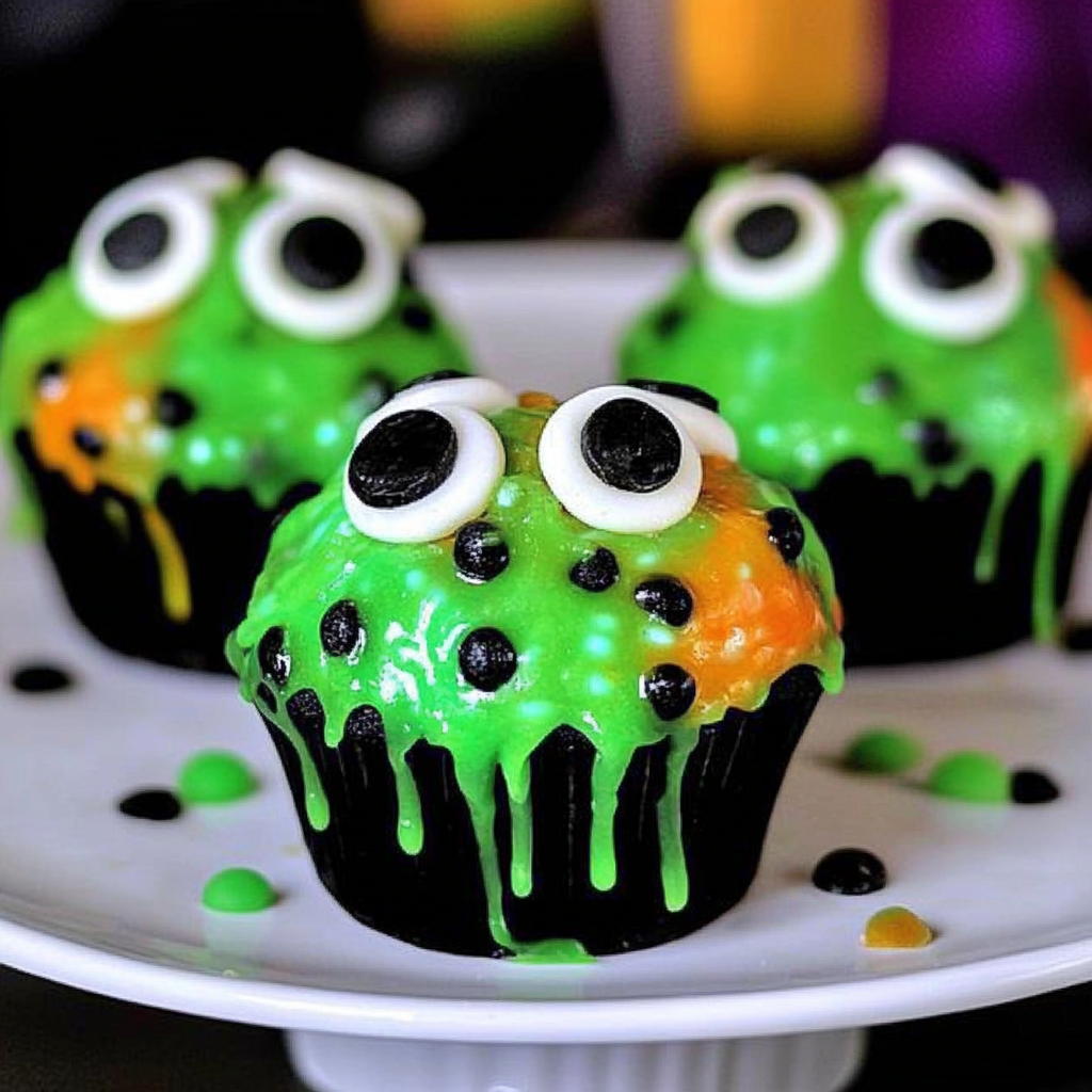 I remember baking these fun cupcakes with my kids on Halloween night. Their laughter filled the kitchen as we added candy eyes and green sprinkles, turning our simple baking session into a memorable family tradition.