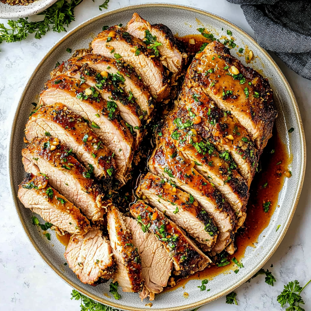 Slice into thick medallions after resting and serve with your favorite sides—a little pan sauce or jus drizzled over enhances every bite! Enjoy this delicious centerpiece at your next gathering!